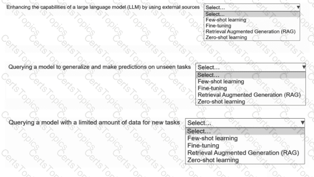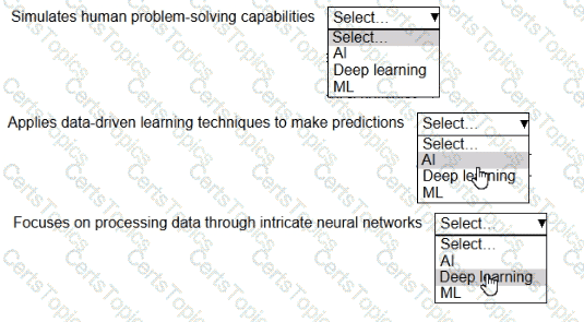 Select the correct AI term from the following list for each statement. Each AI term should be selected one time. (Select THREE.)