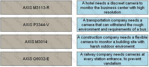 Match each function to the correct video surveillance system component. Drag each gray box from the left column to the matching blue box in the right column.
