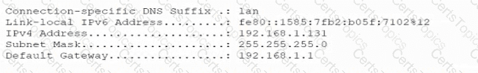 A user on a SOHO network is unable to watch online videos, even at 240 pixels. The technician runs ipconfig from the user's computer and records the following: