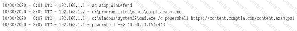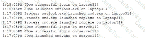 A SOC analyst received an alert about a potential compromise and is reviewing the following SIEM logs: