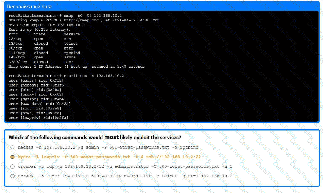 . Analyze the output and select the command to exploit the vulnerable service.
