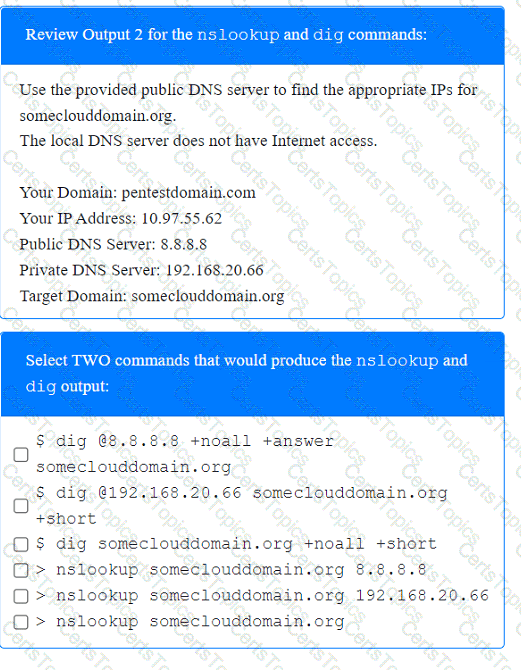 Which of the following commands did the tester use to get this output?