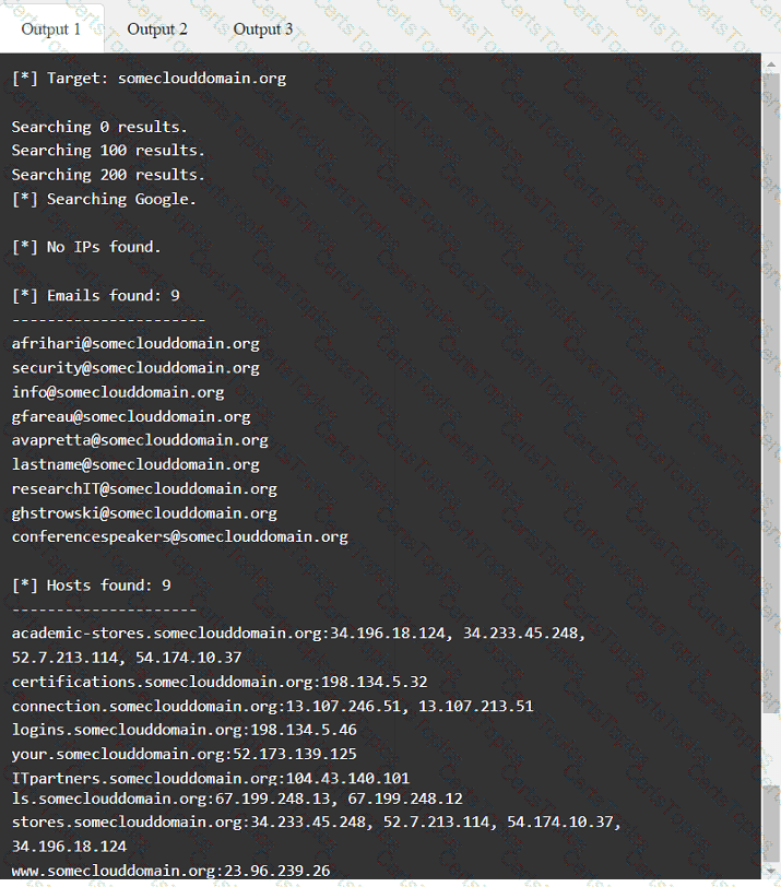 While conducting a reconnaissance activity, a penetration tester extracts the following information: