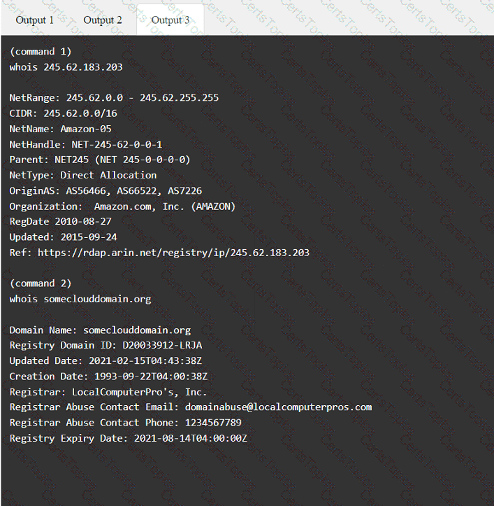Select the appropriate answer(s), given the output from each section.