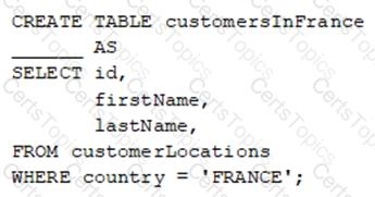 A data engineer wants to create a new table containing the names of customers who live in France.