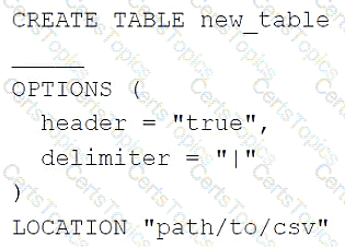 A data engineer needs to create a table in Databricks using data from a CSV file at location /path/to/csv.