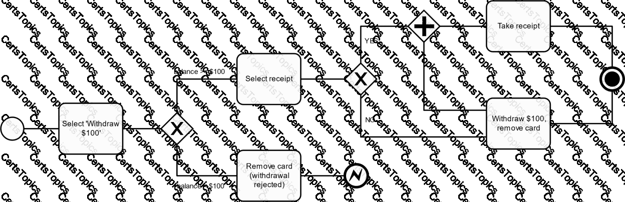 As an acceptance tester you want to test the $100 withdrawal process described by the following BPMN model.
