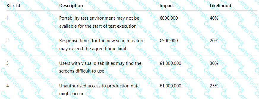 You are writing the project test plan and are analysing the following risks in the project risk register: