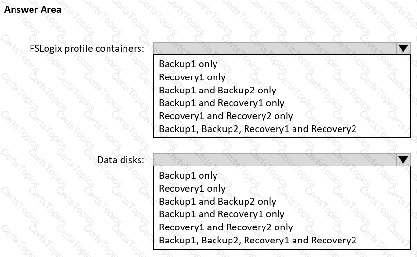 To which resources can you back up the profile containers and the data disks? To answer, select the appropriate options in the answer area.