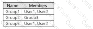 You have an Azure subscription that contains two users named User1 and User2 and the Microsoft Entra groups shown in the following table.