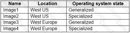 You have a shared image gallery that contains the Windows 10 images shown in the following table.