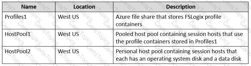 You have an Azure Virtual Desktop host pool named Pool! that contains two session hosts named Host1 and Host2. The session hosts use FSLogix user profiles.