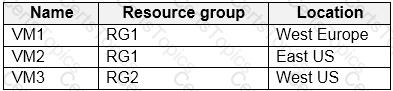 You have an Azure subscription that contains the virtual machines shown in the following table.
