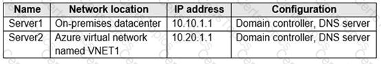 Your network contains an on-premises Active Directory domain that syncs to an Azure Active Directory (Azure AD) tenant. The domain contains the domain controllers shown in the following table.