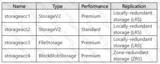 You have an Azure subscription that contains an Azure Virtual Desktop deployment and the storage accounts shown in the following table.