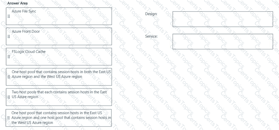 Which host pool design and which service should you configure to meet the disaster recovery requirements? To answer, drag the appropriate solution to the correct requirements. Each solution may be used once, more than once, or not at all. You may need to drag the split bar between panes or scroll to view content