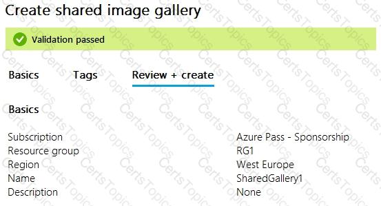 You create a shared image gallery as shown in the SharedGallery1 exhibit. (Click the SharedGallery1 tab.)