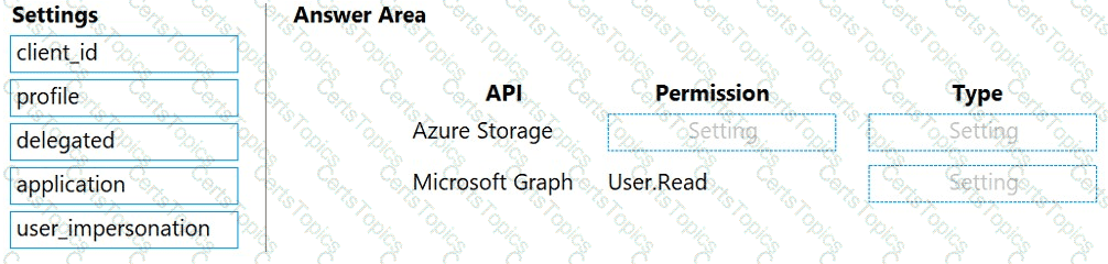 How should you configure the app? To answer, select the appropriate options in the answer area.