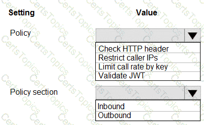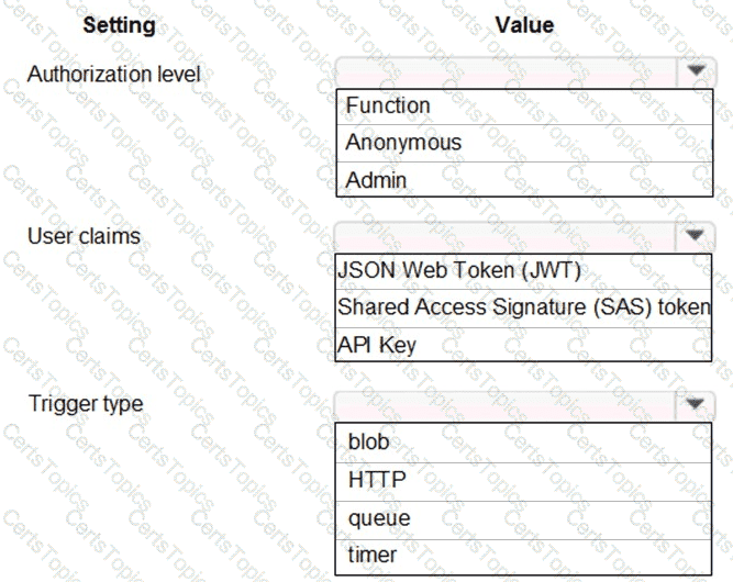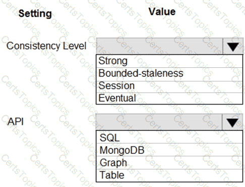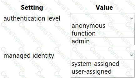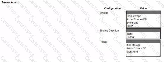 How should you configure the solution? To answer, select the appropriate options in the answer area.