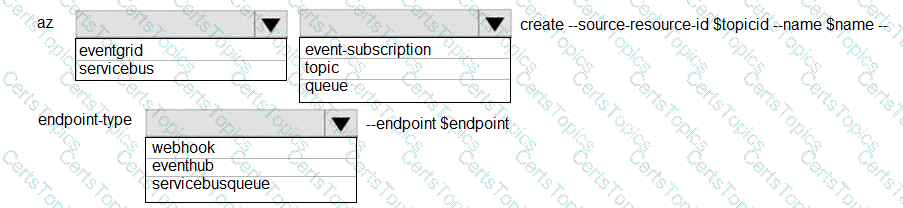 How should you complete the Azure CLI command? To answer, select the appropriate options in the answer area.
