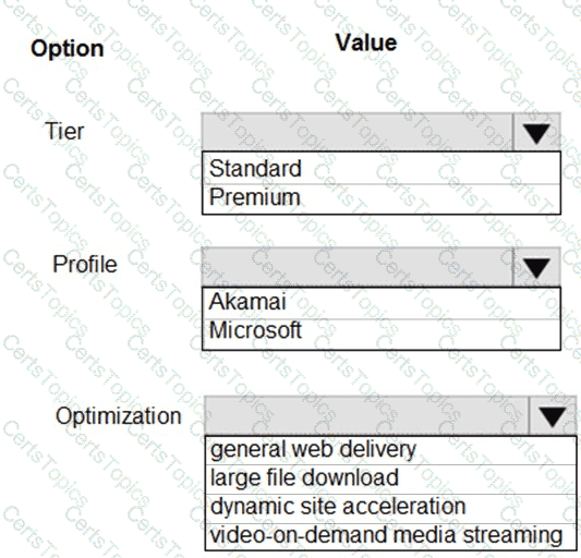 Which values should you use? To answer, select the appropriate options in the answer area.