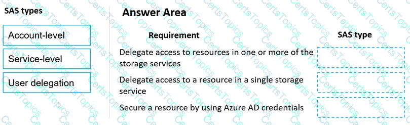 Which SAS types should you use? To answer, drag the appropriate SAS types to the correct requirements. Each SAS type may be used once, more than once, or not at all. You may need to drag the split bar between panes or scroll to view content.