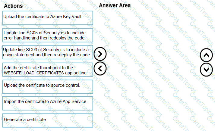 In which order should you perform the actions? To answer, move all actions from the list of actions to the answer area and arrange them in the correct order.