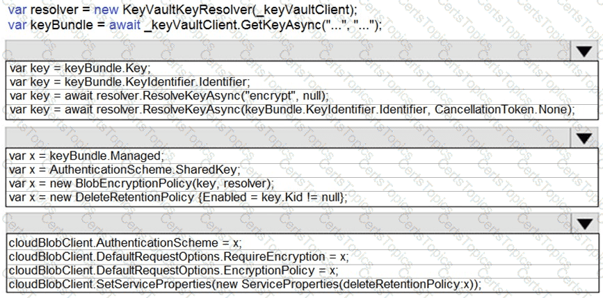 How should you complete the code? To answer, select the appropriate options in the answer area.