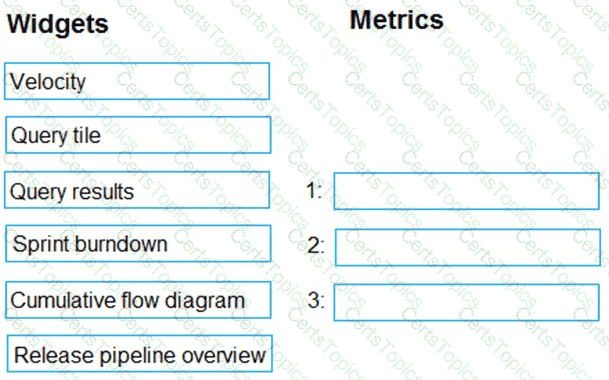 Which widget should you use for each metric? To answer, drag the appropriate widgets to the correct metrics. Each widgetmay be used once, more than once, or not at all. You may need to drag the split bar between panes or scroll to view content.