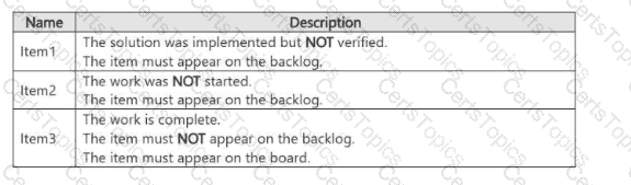 You are using Agile process methodologies and Azure Boards in Azure DevOps. You import the work items shown in the following table.
