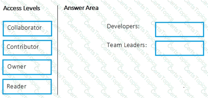 Which package feed access levels should be assigned to the Developers and Team Leaders groups for the investment planning applications suite? To answer, drag the appropriate access levels to the correct groups. Each access level may be used once, more than once, or not at all. You may need to drag the split bar between panes or scroll to view content.