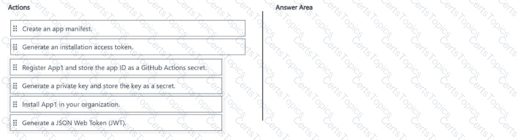 Whichthree actions should you perform in sequence? To answer, move the appropriate actions from the list of actions to the answer area and arrange them m the correct order.