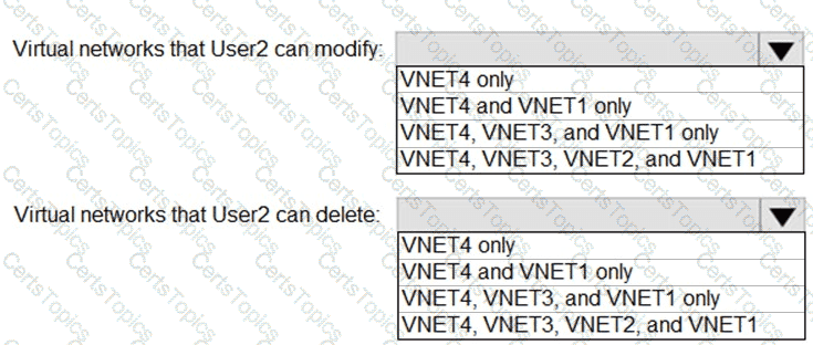 Which virtual networks in Sub1 can User2 modify and delete in their current state? To answer, select the appropriate options in the answer area.