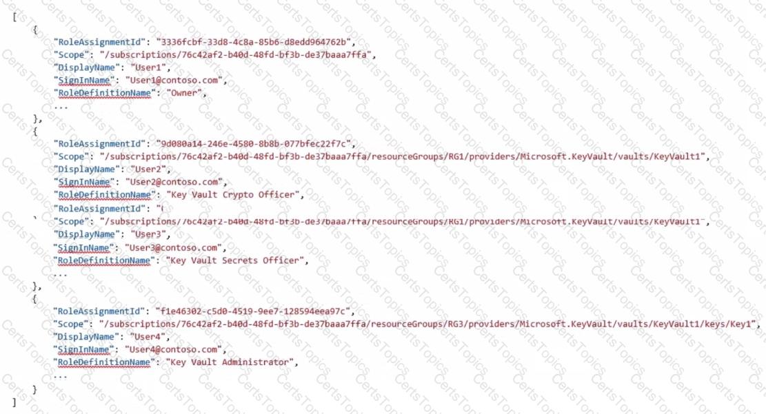 You have an Azure subscription that contains an Azure key vault. The role assignments for the key vault are shown in the following exhibit.