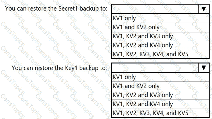 To which key vaults can you restore each backup? To answer, select the appropriate options in the answer area.