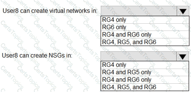 In which resource groups can User8 create virtual networks and NSGs? To answer, select the appropriate options in the answer area.