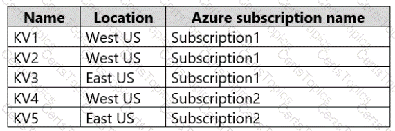 You have the Azure key vaults shown in the following table.