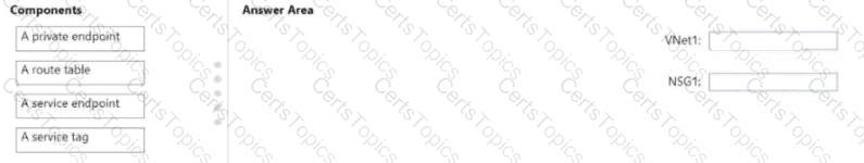 What should you configure for VNetl and NSG1? To answer, drag the appropriate components to the correct resources. Each component may be used once, more than once, or not at all. You may need to drag the split bar between panes or scroll to view content
