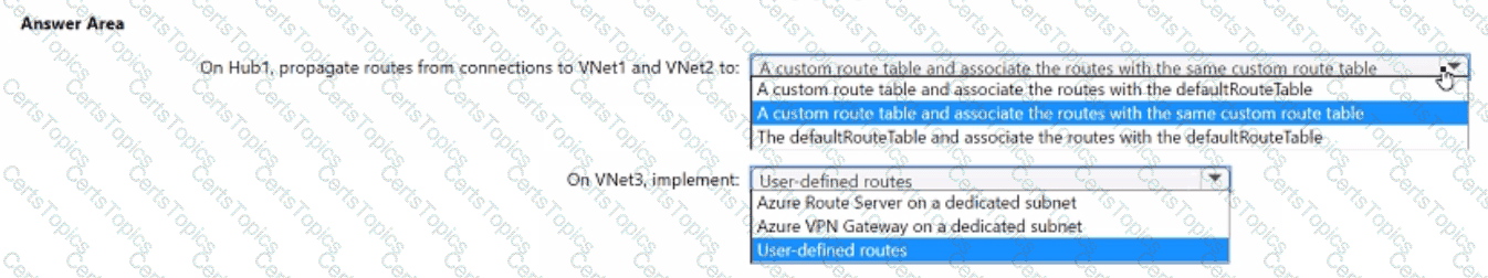 You need to implement transit connectivity between VNet1 and VNet3 via Hub1 by using BGP peering. The solution must minimize costs.
