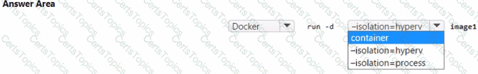 Which isolation mode can you use for each container? To answer, select the appropriate options in the answer area. NOTE: Each correct selection is worth one point.