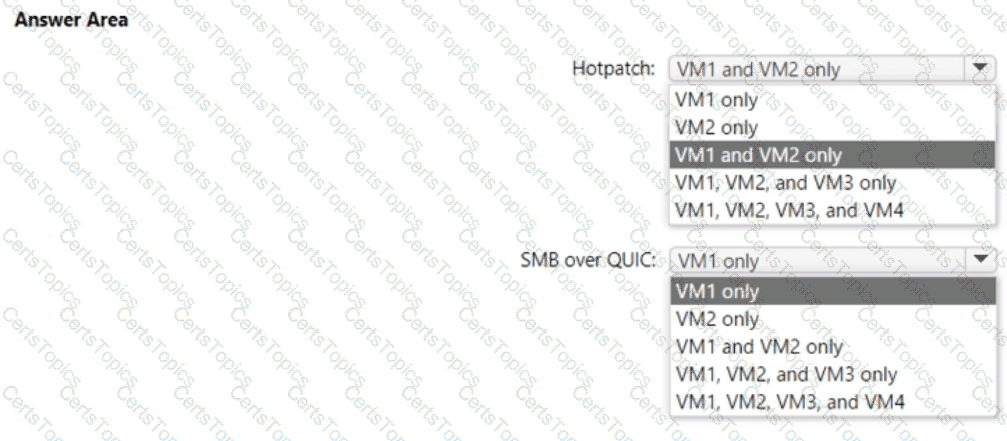 Which virtual machines support Hotpatch, and which virtual machines support SMB over QUIC? To answer select the appropriate options in the answer area.