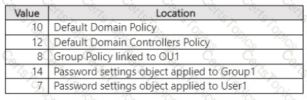 Your network contains an Active Directory Domain Services (AD DS) domain. The domain contains a user named User1. User1 is a member of a group named Group1 and is in an organizational unit (OL)} named OU1.