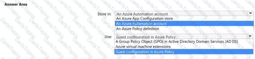 Where should you store the DSC scripts, and what should you use to apply DSC to the servers? To answer, select the appropriate options in the answer area.