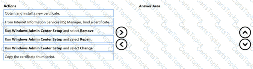 Which actions should you perform in sequence? To answer, drag the appropriate actions to the correct order. Each action may be used once, more than once, or not at all. You may need to drag the split bar between panes or scroll to view content.