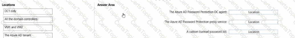 Where should you configure the components for Azure AD Password Protection? lo answer, drag the appropriate components to the correct locations. Each component may be used once, more than once, or not at all. You may need to drag the split bar between panes or scroll to view content.