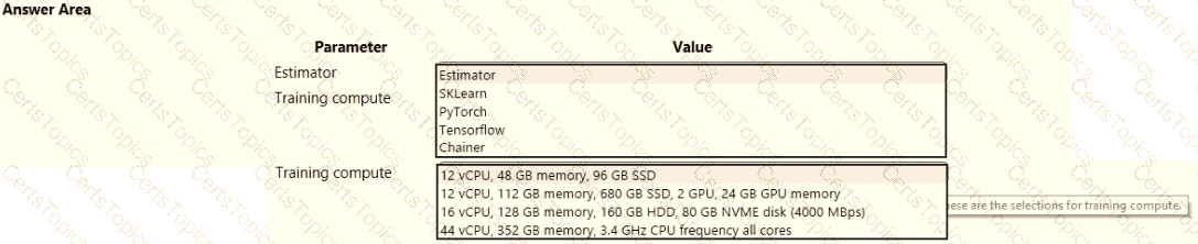 Which values should you use? To answer, select the appropriate options in the answer area.