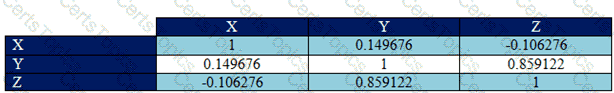 The Poisson correlation coefficient (r-value) of X, Y, and Z features is shown in the following image: