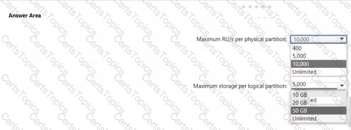What are the partition limits for request units per second (RU/s) and storage? To answer, select the appropriate options in the answer area.