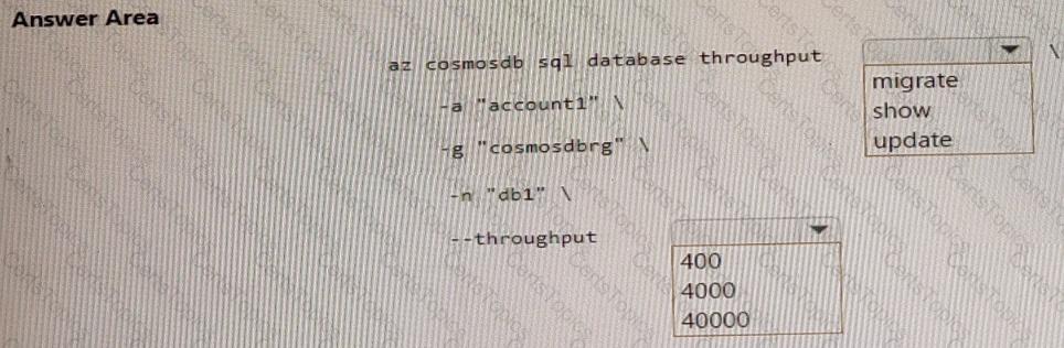 You need to move db1 from manual throughput to autoscale throughput by using the Azure CLI. The solution must provide a minimum of 4,000 RU/s and a maximum of 40,000 RU/s.