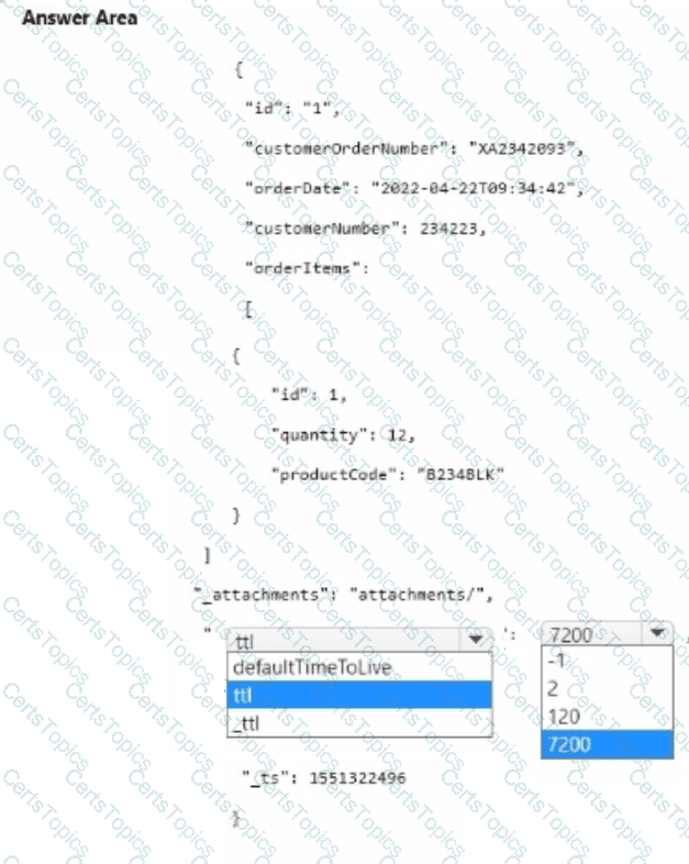 You need to insert an item into contained. The solution must ensure that the item is deleted automatically after two hours.